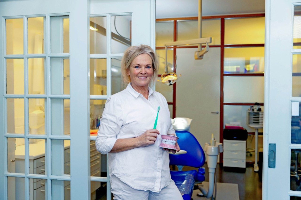 Monique Dolmans (61) werkt als preventieassistente bij tandartspraktijk Schyns in Maastricht. Na bijscholing is zij terug op de plek waar het voor haar ooit begon.