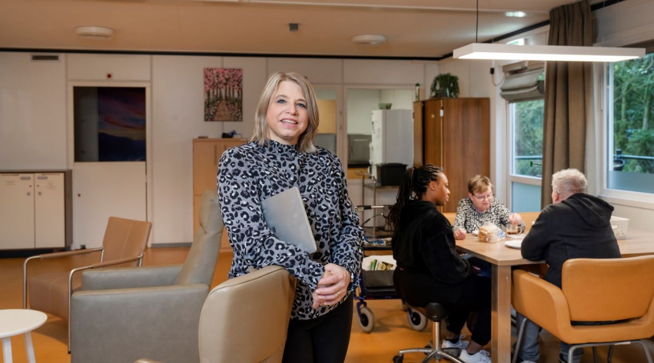 ‘Ik heb altijd in administratie en hypotheken gewerkt. Steeds vaker dacht ik: wat ben ik nu eigenlijk aan het doen? Het werk voelde uitzichtloos en gaf me geen voldoening. 2 jaar geleden begon een vriendin als zij-instromer bij Lunet. Haar enthousiasme inspireerde me, maar ik was bang dat ik te oud was om de overstap te maken. Toch ben ik met Lunet in gesprek gegaan voor een traject als zij-instromer. Er was een goede klik en ik mocht een dag meelopen. Over een jaar zit mijn leertraject erop. Nu weet ik dat mijn leeftijd ook voordelen heeft in dit werk. Door mijn levenservaring sta ik steviger in mijn schoenen.’