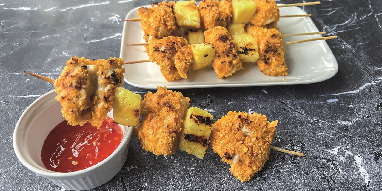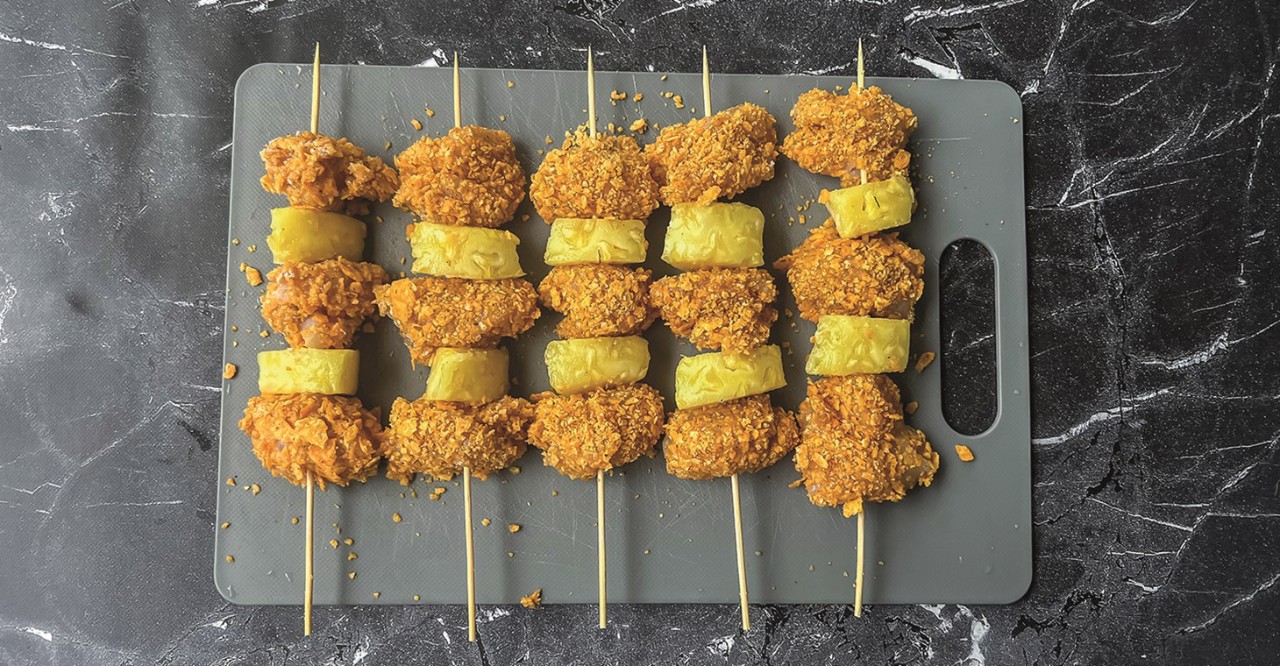 Een keer wat anders dan de ‘standaard’ kipspiesjes? Probeer dan deze krokante spiezen met kip én ananas. Lekker fris en knapperig. Na de bbq spiesjes over? Je kunt ze ook koud eten, of haal de stukjes kip en ananas van de stokjes en doe ze door een salade. Lekker voor de lunch!
