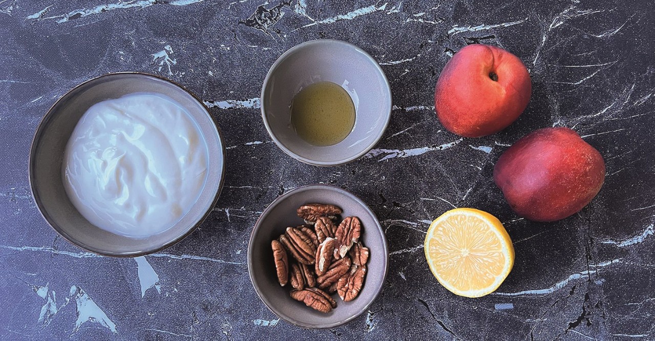 Dit toetje met nectarine is een lust voor het oog, maar ook góed voor je oog. De oranje zomervrucht zit vol gezonde voedingsstoffen die na het eten terechtkomen in de zogenoemde ‘gele vlek’ op het netvlies in je oog. Die plek zorgt ervoor dat je alles scherp ziet.