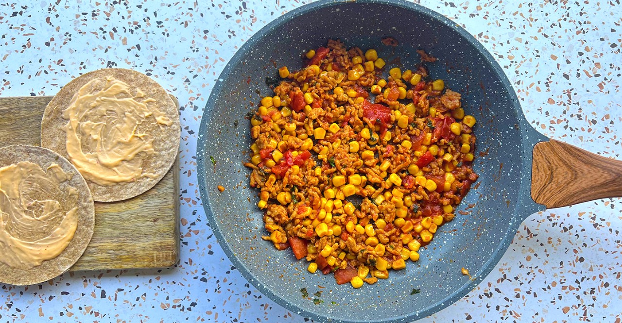 Deze heerlijke tortilla’s zijn rijkelijk gevuld met kipgehakt, mais, tomaat, kruiden en kaas. Heerlijk te combineren met een frisse muntsalade. De tortilla’s kun je gemakkelijk koud eten, maar nog lekkerder is om ze even te verwarmen in de magnetron. Zo’n magnetron is in vrijwel elke zorg- en welzijnsinstelling wel te vinden.