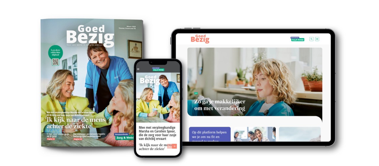 Goed Bezig, het magazine voor iedereen die werkt of heeft gewerkt in zorg en welzijn, is vernieuwd! Je bepaalt nu zelf hoe je het magazine ontvangt: per post of digitaal per e-mail.