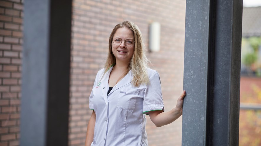 Anouk: ‘Soms wel ja, maar het verschilt per dienst. De ene dag zijn er vooral patiënten die veel zelf doen en weinig zorg vragen, maar er zijn ook diensten met heel zieke patiënten of veel acute situaties. Dan lopen we over. Dat is denk ik ook het probleem: er wordt gekeken naar het aantal ‘poppetjes’. De ene dag is de dienst rustig en is de bezetting inderdaad goed, maar op andere dagen is dat aantal verpleegkundigen niet genoeg voor de zorg die nodig is. Het zou mooi zijn als daar beter rekening mee gehouden kan worden, maar ik denk niet dat daar op te plannen valt. Iedere dag is anders. Daarom vind ik werken in de zorg zo leuk. Maar mijn perfectionisme is dan soms misschien wel mijn valkuil: ik wil niet ‘alleen maar’ zorg leveren. Ik wil ook een praatje maken, ervoor zorgen dat iemand er netjes en verzorgd bij zit. Op sommige dagen ga ik daardoor misschien wel over mijn eigen grenzen heen.’