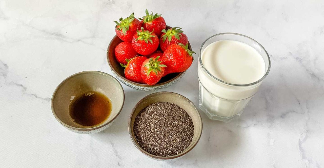 1. Meng in een schaaltje of bakje de melk met het chiazaad en de ahornsiroop