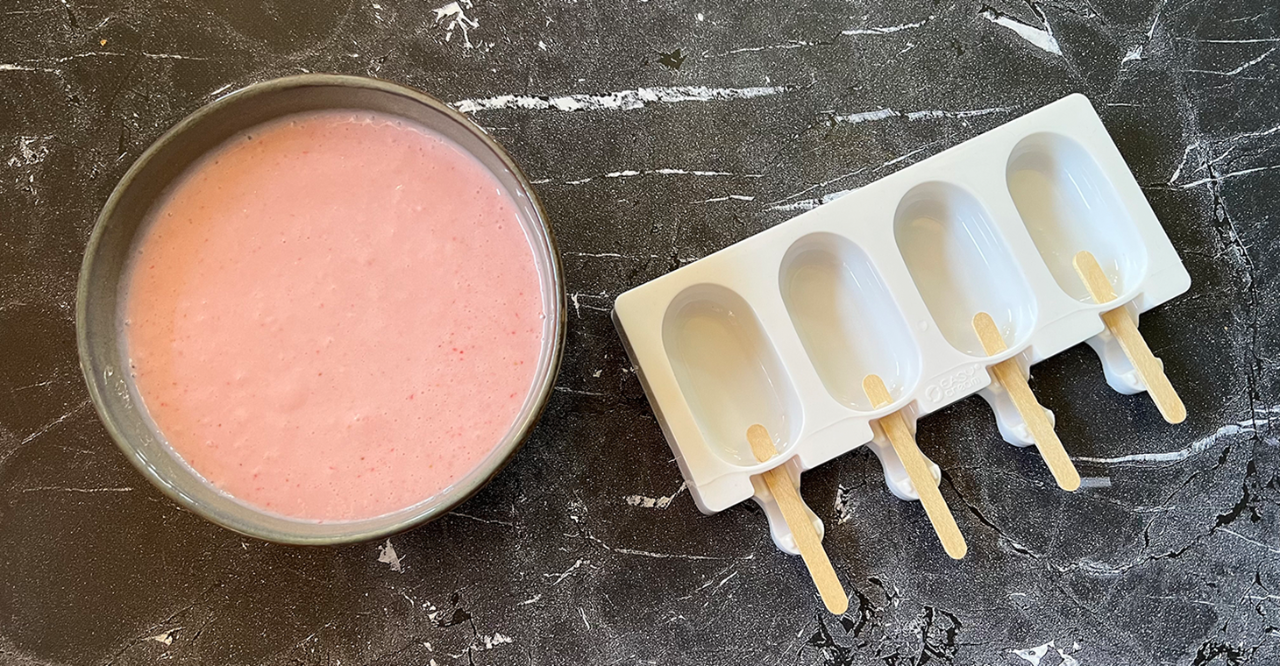 Tip: je kunt de ijsjes natuurlijk ook met vers fruit maken. Voor aardbeien en frambozen is het nu het seizoen.