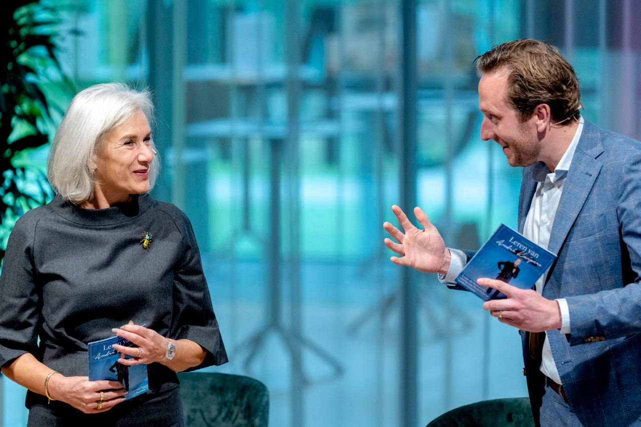 Ook Van Hattum sloot af met een voorbeeld van visionair leiderschap. Als marathonloper liet hij zich inspireren door Eliud Kipchoge, die als doel had de marathon onder de twee uur te lopen. “Hij heeft daarvoor een heel team geformeerd met onder meer 41 hazen. En het is hem gelukt. Voor mij een symbool voor de lange weg die wij te gaan hebben op weg naar een beter klimaat. Dat is ook een marathon, maar dan in kleine stappen.”